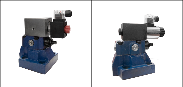 傳統(tǒng)電磁溢流閥結(jié)構(gòu):普通2位4通滑閥式電磁閥控制,由6通徑閥座+閥芯+電磁線圈組成。