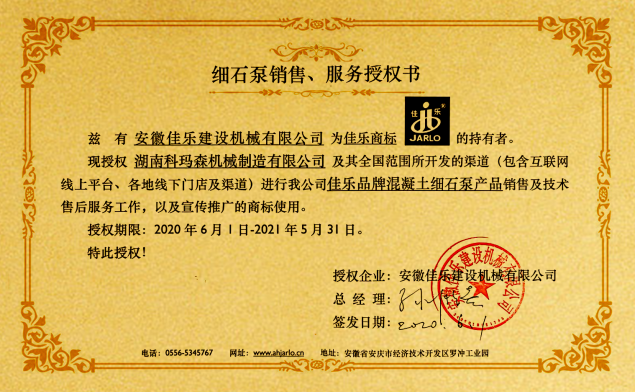 針對(duì)以上顧慮,科瑪森給出了承諾:“①同等配置下,科瑪森機(jī)型具備更高性?xún)r(jià)比;②產(chǎn)品易損件總體壽命>兩年,遠(yuǎn)超同行;③零部件及配件采用三一標(biāo)準(zhǔn),通用度高;④操作簡(jiǎn)單,易懂易學(xué)”。同時(shí),我們也和范老板介紹,湖南科瑪森機(jī)械制造有限公司從6月1日起已經(jīng)很榮幸成為安徽佳樂(lè)建設(shè)機(jī)械有限公司授權(quán)全國(guó)“細(xì)石泵”代理商,負(fù)責(zé)全國(guó)范圍進(jìn)行佳樂(lè)品牌混凝土細(xì)石泵產(chǎn)品生產(chǎn)、銷(xiāo)售及技術(shù)售后服務(wù)工作。范老板聽(tīng)到表示這是意外的收獲,很驚喜!